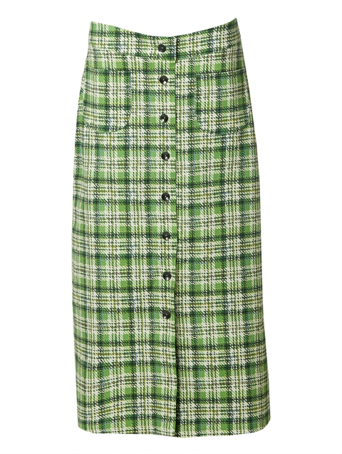 DULEAS SPRING CHECK - lang gennemknappet nederdel fra danske du Milde i A-facon.