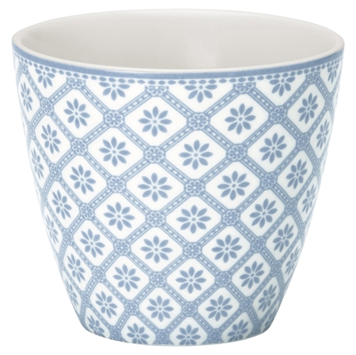 Smuk lattekop i stentøj i Bianca dusty blue serien fra GreenGate. Koppen er lys med sart blåt mønster. Højde 9 cm. Tåler opvaskemaskine og microovn. Porcelænet er delvist håndlavet og små uregelmæssigheder samt variationer i størrelse og farve kan derfor forekomme.