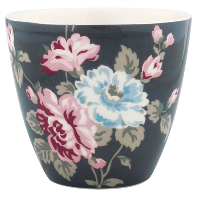 Smuk lattekop i stentøj i serien Maude fra GreenGate. Koppen er mørkegrå med smukt blomstermotiv.